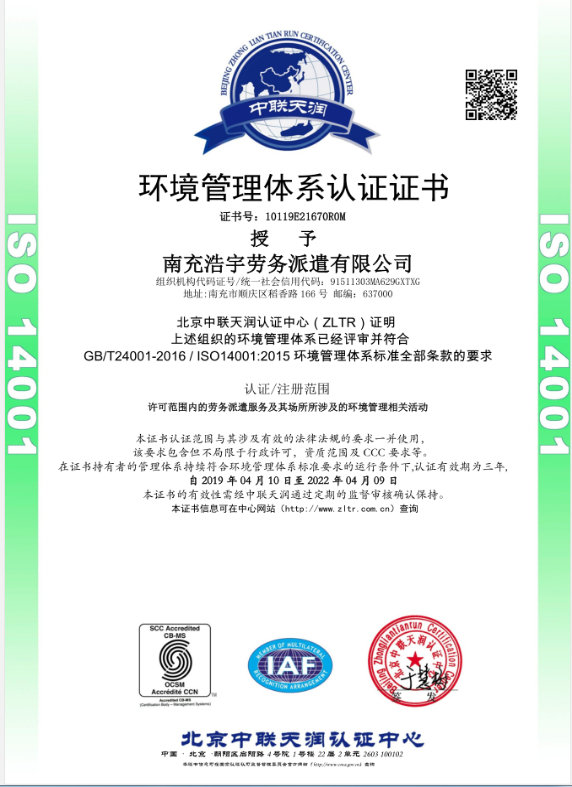 我公司獲得環(huán)境管理體系認(rèn)證證書